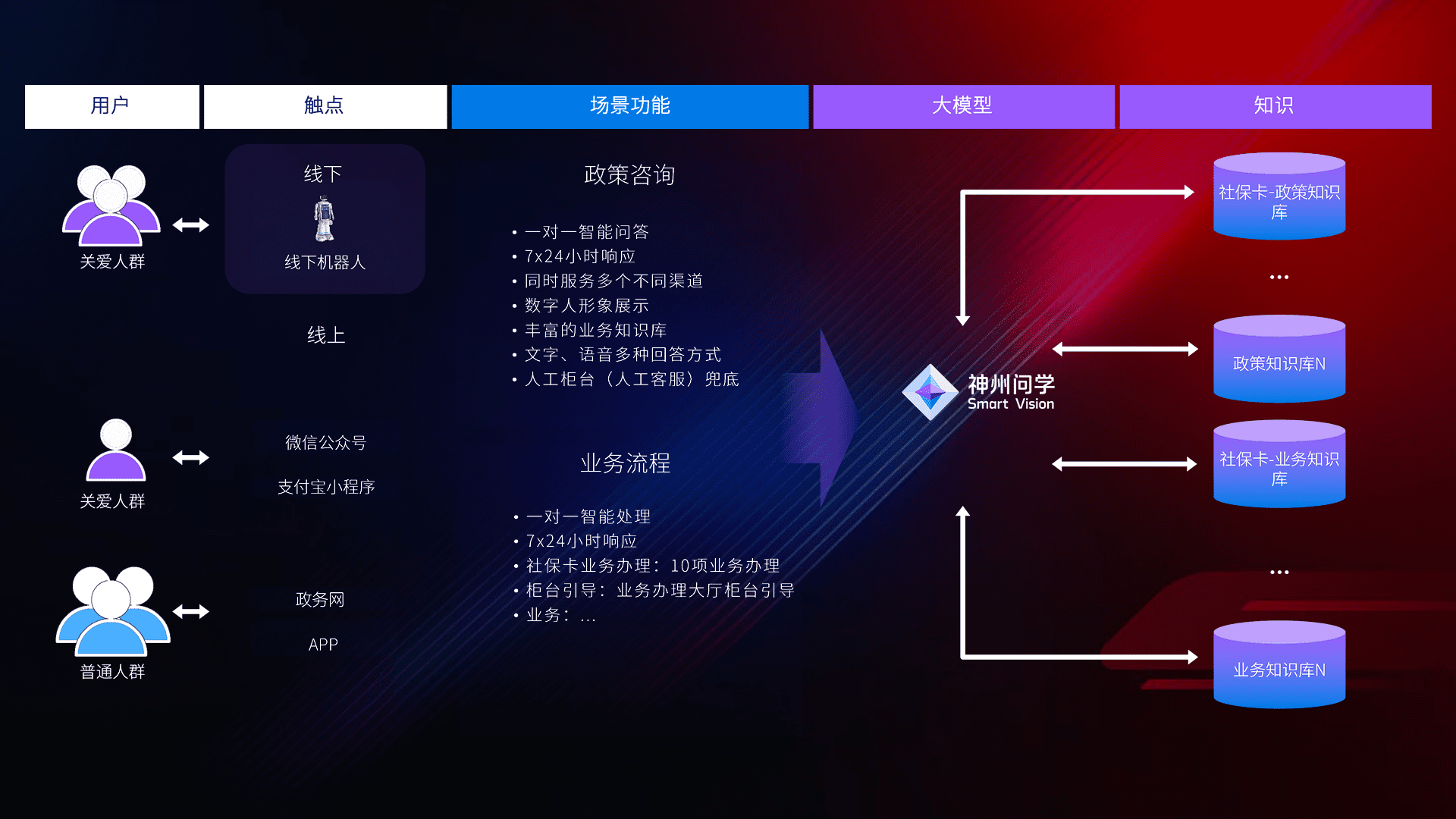 • 线上线下全覆盖:线上提供微信公众号、、、支付宝小程序、、、、政务网、、、app多种渠道,,,,与线下机器人形成完整服务体系。。。。